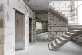 Дом из газосиликатного блока, утеплен полистиролом, перекрытия- монолитная плита, фасад оштукатурен, фундамент- монолитная плита; фальцевая скатная крыша, прямая крыша с направляемой кровлей.