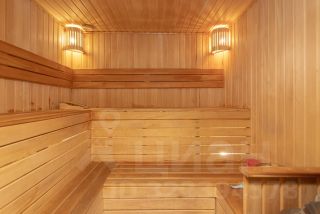 Отдельностоящая баня с комнатой для отдыха, кухонной зоной, парилкой, душевой и санузлом.