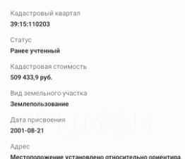 - Кадастровый номер 39:15:110203:897