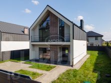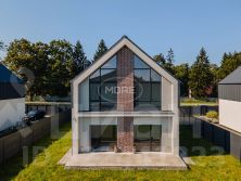 Двухэтажный дом с тремя полноценными спальнями и высотой потолков достигающих 6м с панорамными окнами.