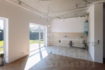 - стадия предчистовой отделки + частичный ремонт (на 1 этаже пол по всему периметру выложен плиткой, санузлы облицованы керамическим кафелем). Внутренние стены выровнены цементно-известковой штукатуркой. Выполнена разводка электричества, отопления и инженерных систем.