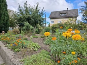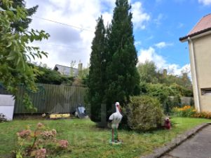На участке растают плодовые деревья, клубника и разнообразные цветы, также имеется теплица.