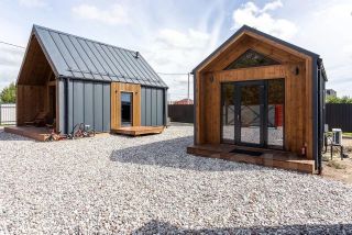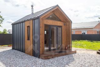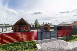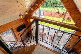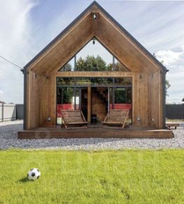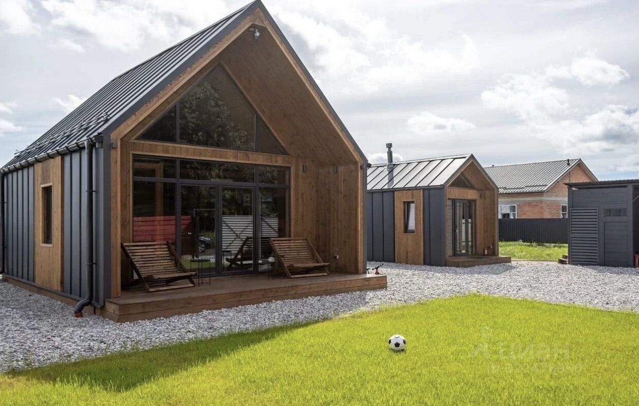 Дом выполнен в стиле *Barnhouse* с высокими потолками и панорамным освещением.