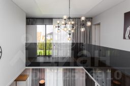 - Гостиная: Просторная кухня-гостиная и отдельная гостиная для отдыха с эффектной лестницей на второй этаж.