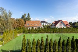 - Развлечения: На территории вы найдете теннисный корт, баскетбольное кольцо, тренажерный зал с собственным столом для настольного тенниса, массажные кресла и бильярдный стол, русскую баню и хамам.
