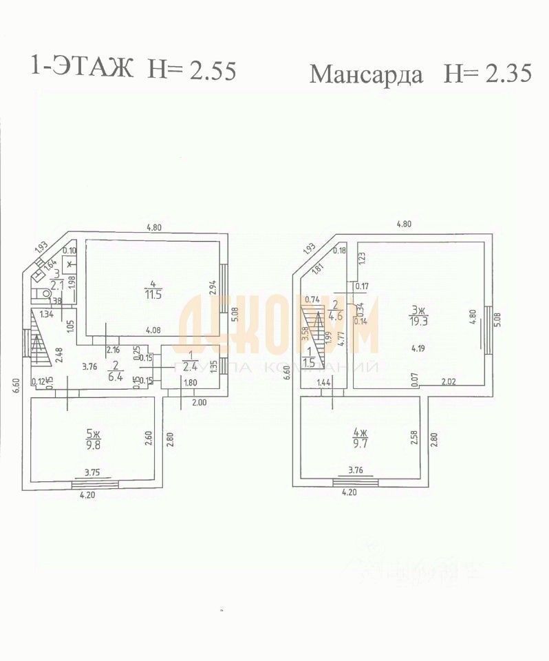 комнаты: 9,8 кв.м., 9,7 кв.м., 19,3 кв.м.