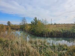 Участок ровный ,правильной формы, три водоема, глубиной до 4 метров, запущена рыба.