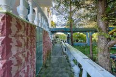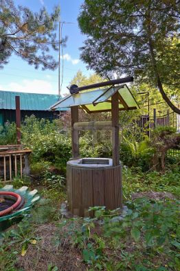 участок полностью благоустроен: помимо основного дома здесь расположен навес для машины, беседка, хозяйственные постройки (летний домик, искусственный пруд, летняя терраса обвитая виноградом, теплица и огород с цветочными клумбами)