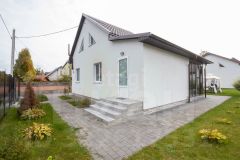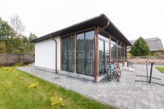- Планировка гостевого дома предусматривает две комнаты и кухню-гостиную, что открывает возможности для создания дополнительного жилого пространства или коммерческого объекта.