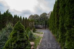 -Благоустроенная придомовая территория вымощена брусчаткой и украшена многолетними туями.