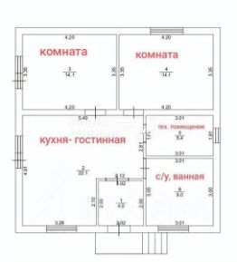 Площадь дома 72 кв. 2 комнаты, кухня- гостиная, большой санузел 9 м. Кв, тех помещение, коридор с нишей под шкаф купе.
