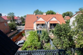 - Второй этаж - одна большая спальня, просторный балкон 8 м2, санузел. Третий этаж (мансарда) - свободная планировка. Этажи дома соединяет деревянная лестница (полностью отреставрированная немецкая лестница). Высокие потолки - 3м.