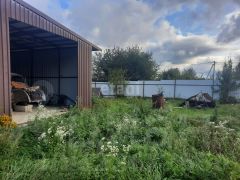 - На территории расположен ангар из профлиста площадью, достаточной для размещения четырех автомобилей или организации небольшой мастерской по ремонту авто.