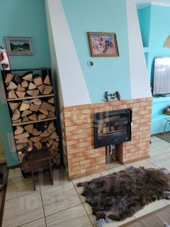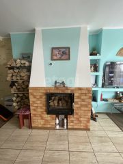 2 этаж: большая студия с полноценной кухней включая третий кран с питьевой водой через дорогую систему очистки воды с собственной скважины, камин он же котёл обогревающий дом, батареи, тёплый пол, большой телевизор и диван 4,5 метра, всё как на фото, терраса второго этажа.