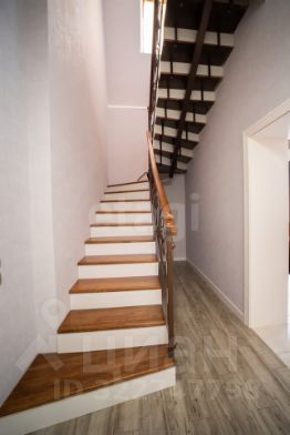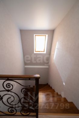 - Интерьер дополнен красивой деревянной лестницей на второй этаж.
