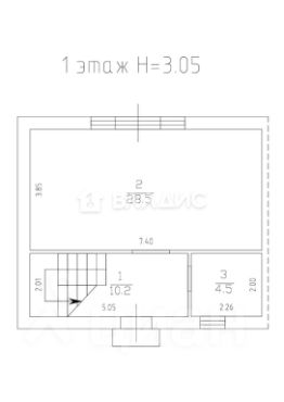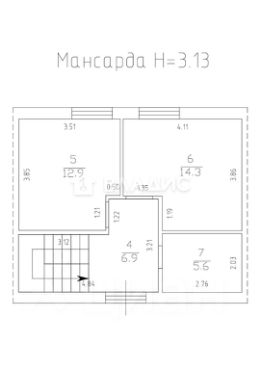 На втором мансардном этаже две изолированные комнаты 12,9+14,3 м2. Совмещённый сан. узел.