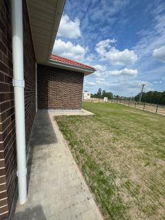 - огороженная территория, посажен газон, автоматические ворота