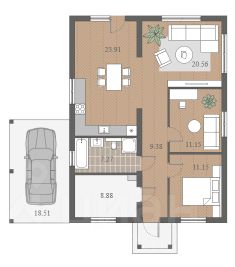 Домовладения небольших размеров для семей, стремящихся проводить меньше времени в стрессогенной среде города. По площади сопоставимы с просторной трёхкомнатной квартирой комфорт-класса. Дополнительно могут включать террасу, навес для автомобиля.