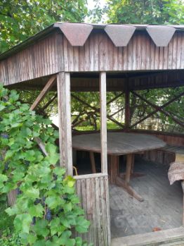 На участке баня с летней кухней, гараж, теплица, все плодоносящие насаждения, много цветов, участок ухожен.
