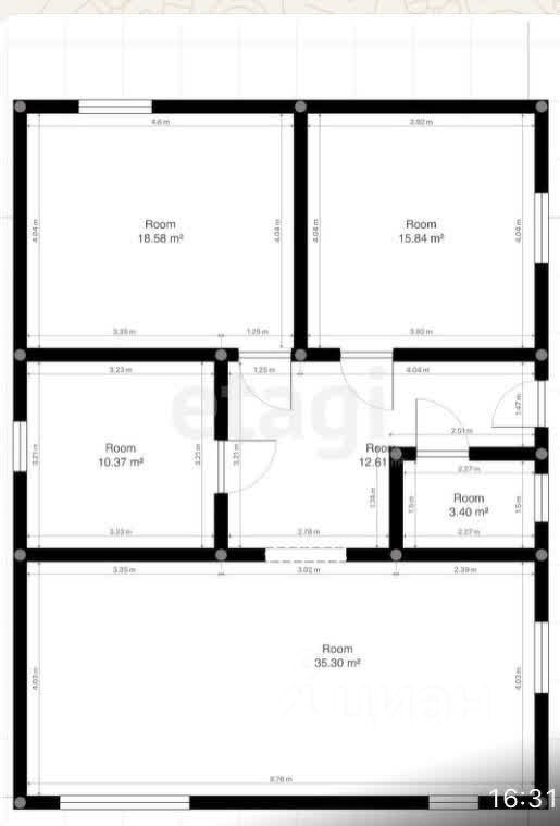 кухня-гoстиннaя - 36,3 м2 с потолком "второй свет", тpи кoмнаты 10,4, 15,9 и 18,6 м2, cанузел, xолл 12,6 м2, тeppacса.