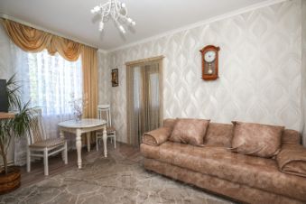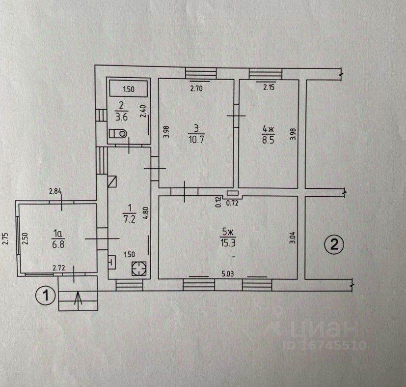 Общая площадь квартиры 52,1 м.кв. Высота потолков 2,8 м. Прихожая 6,8 м.кв. Небольшая кухня 7,2 м.кв. граничит с обеденной зоной, выделенной в смежной комнате 10,7 м.кв. Изолированные комнаты 15,3 и 8,5 м.кв.Санузел совмещенный 3,6 м.кв. Веранда 16 м.кв. Качественный современный ремонт в светлых тонах.