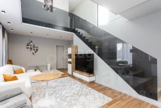 светлая кухня-гостиная + отдельная гостиная с элегантной лестницей;