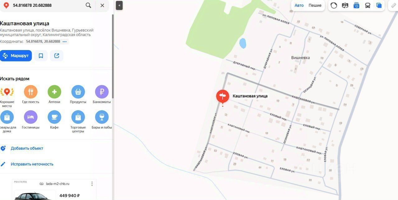 Отличное месторасположение. Недалеко от Калининграда. Рядом живут соседи, участки активно застраиваются. В шаговой доступности остановка общественного транспорта. Отличное место для комфортного проживания в экологически чистом месте.