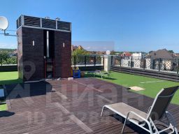 крыша панорамная, прямая, открытая с лаундж зоной с камином и искусственным газоном.