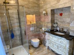 Второй этаж: 2 мастер спальни со своими гардеробными, санузлами и душевыми. Так же ещё две гостевых комнаты и отдельный санузел с ванной. На втором этаже две террасы.