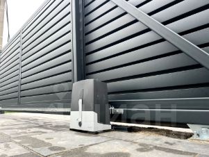 Забор с автоматическими откатными воротами Came (Италия). Заполнение жалюзи 4D в порошковой покраске - 100% приватность, современный дизайн и долговечность.