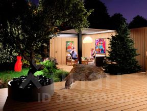 Настил отмостки и террасы из уникальной МПК доски со сроком службы более 25 лет: не выгорает, не впитывает воду, стойкая к загрязнению.
