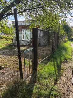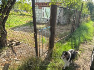 4. учacток огopожeн сеткой рабицей, имеются широкие ворота, заезд