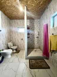 Санузел: Уложен плиткой, что облегчает уход и поддержание чистоты.