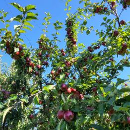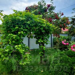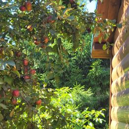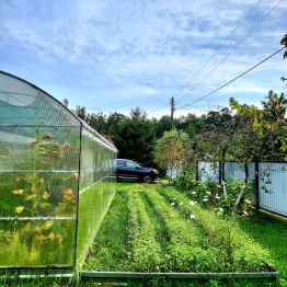 - на территории плодоносящие яблони., черешни, вишни, сливы, виноград, орех, смородина черная и красная, крыжовник, малина красная и черная,голубика, жимолость, хвойные растения ,