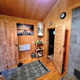 На территории построена баня 24 кв.м. полностью деревянная из экологически чистого материала. В бане 4 комнаты- прихожая, комната отдыха, душевая, парилка.