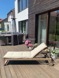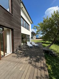 - Фасад: частично отделан лиственницей из Иркутской области.