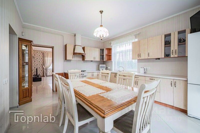 Внутреннее убранство дома продумано до мелочей. На первом этаже расположены: -современная кухня, оборудованная необходимой техникой, с выходом на террасу. -гостиная с камином. Большие окна от пола до потолка наполняют комнату естественным светом и открывают прекрасный вид на двор. Это идеальное место для отдыха, комфортное пространство, где можно проводить время с семьей и друзьями за просмотров спортивных событий или вечерних киносеансов.