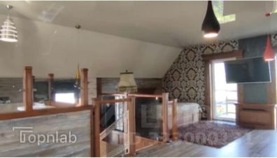 На втором этаже: большая спальня, гардеробная, санузел, балкон. Вся отделка в доме и лестница -из натурального дерева.