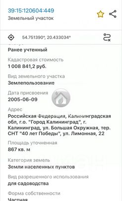 Арт. 118886227 Код объекта: 1729514. Срочно продаётся земельный участок в СНТ "40 лет Победы" на Лимонной улице, 22, Калининград. Участок имеет площадь 8,7 соток и расположен в садовом некоммерческом товариществе, что делает его идеальным местом для тех, кто мечтает о собственном саде или даче.К участку имеется удобный подъезд по асфальтированной дороге, а также проведены электричество и водоснабжение. Это значительно упрощает процесс начала строительства или обустройства территории.Не упустите шанс стать владельцем этого прекрасного участка, который ждёт своего хозяина для воплощения самых смелых идей. Звоните нам прямо сейчас, чтобы узнать больше и записаться на просмотр.Мы гарантируем безопасную сделку и юридическую поддержку нашим клиентам. Поможем одобрить ипотеку с сниженной ставкой.