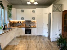 Дом построен в 2020 году из блочного материала, перекрытия — железобетонные плиты. Общая площадь составляет 267 квадратных метров, из которых 100 квадратных метров — жилая площадь. Высота потолков — 2,7 метра, что придаёт пространству воздушность и свободу. Дом оснащён своей котельной, что обеспечивает эффективное и экономичное отопление.