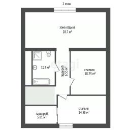 Конструкция дома выполнена из керамзито-бетонных блоков с долговечной фасадной отделкой искусственным камнем.