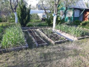- Разработанный участок с обустроенными грядками