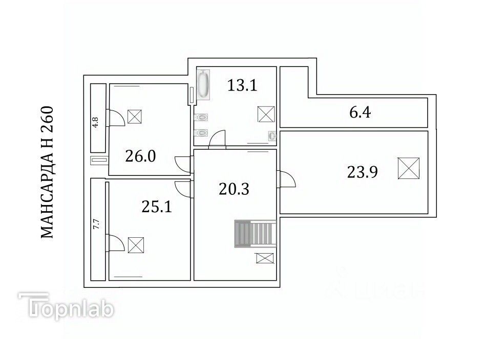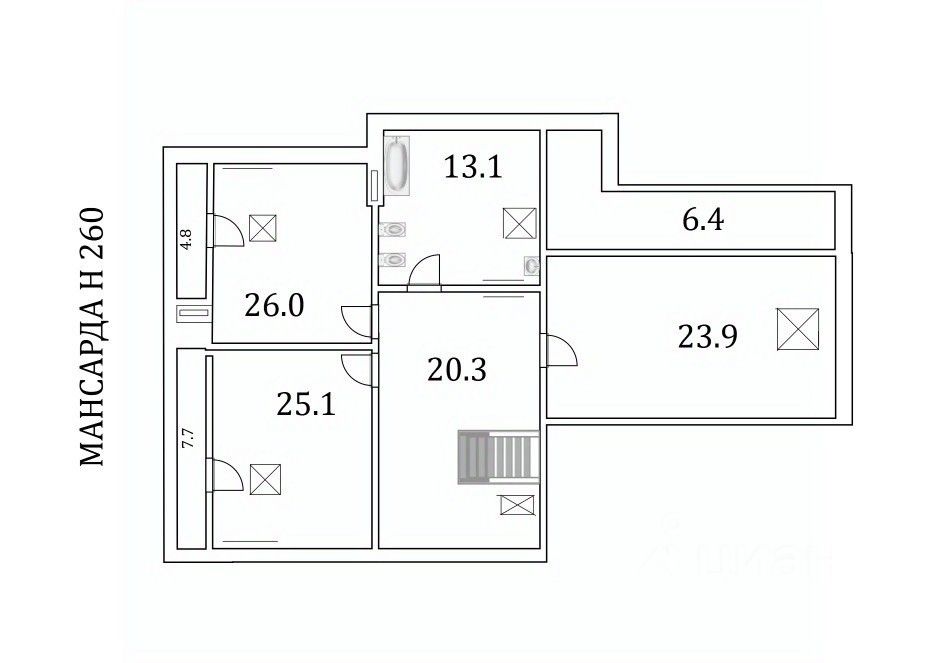 Мансардный этаж: три изолированные спальни — отличное решение для семьи или гостевых апартаментов.