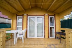 Площадь каждого 20 кв.м. Оборудованы санузлом (душевая, унитаз, раковина), зоной для приготовления (кухней), спальней, террасой. Оснащены всем необходимым оборудованием- посуда, белье, мангал, шезлонги и т.д.