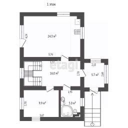 1 этаж: спальня, ванная комната, кухня-гостиная, холл, прихожая, терраса.