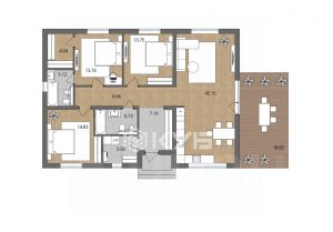 - Дом имеет просторную кухню-гостиную 42.17 м2, три спальни, два санузла (5.73 м2 и 5.12 м2 ), гардеробную, котельную (двухконтурный котел, счетчики, выводы под стиральную машину), большую террасу 18 м2.
