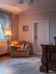- 462 кв.м., первый этаж жилой, со старинной мебелью и оригинальной немецкой плиткой в прихожей. Высота потолков — 2,7 м.;
