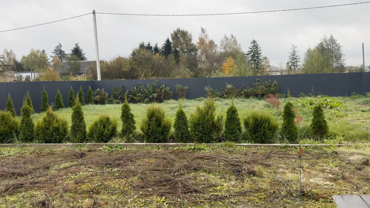 Зеленая изгородь и сад: По периметру уже растут 60 прижившихся туй, создавая приватность. А малина и черешня будут радовать вас урожаем в первый же сезон.