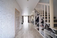 Потолки натяжные и ламинат в хорошем состоянии, межкомнатные двери требуют замены.