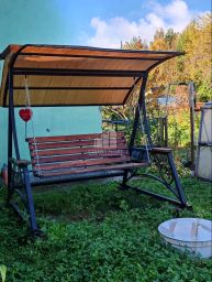 - Плодоносящий сад: яблони (вкуснющие), груша, персик, вишня, черешня, смородина, малина;
